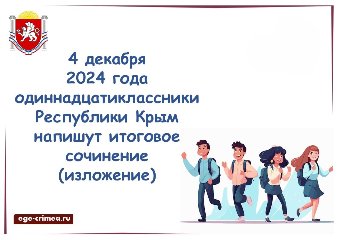 4 декабря 2024 года одиннадцатиклассники Симферопольского района напишут итоговое сочинение (изложение)