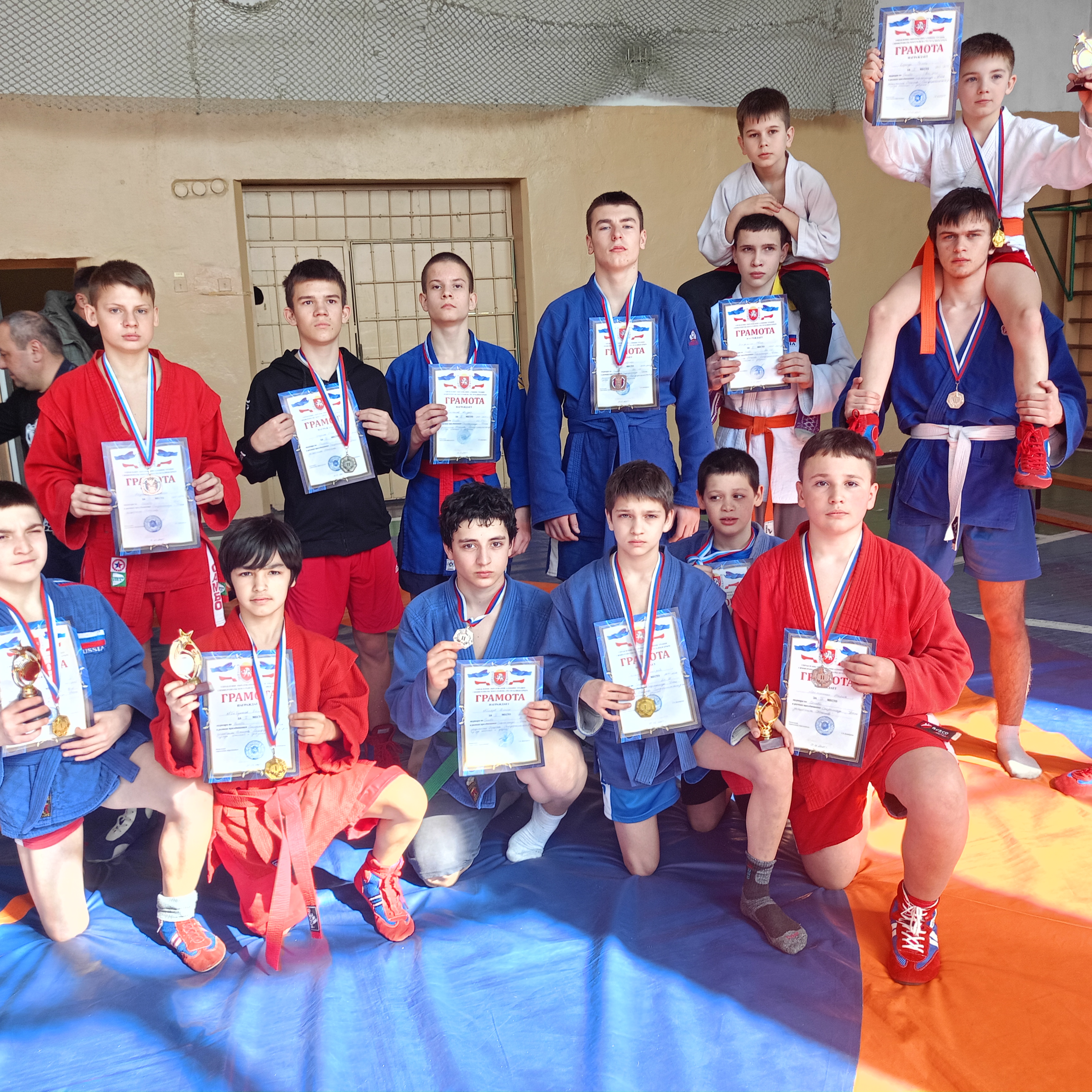 01.03.2025 г. на базе МБОУ "Гвардейская школа-гимназия №2" в рамках Спартакиады Симферопольского района, посвященной Дню Защитника Отечества прошли соревнования по борьбе "Самбо"